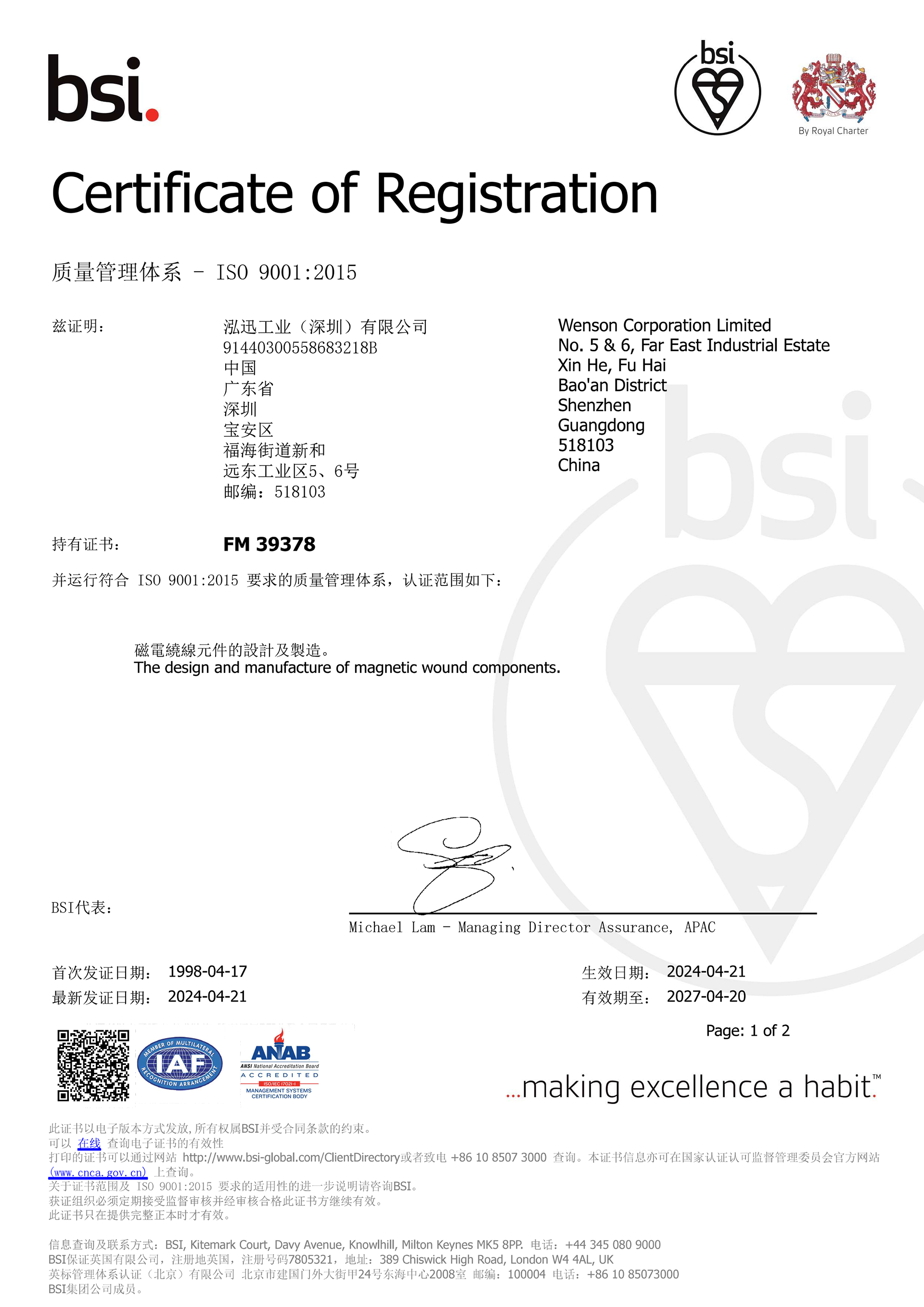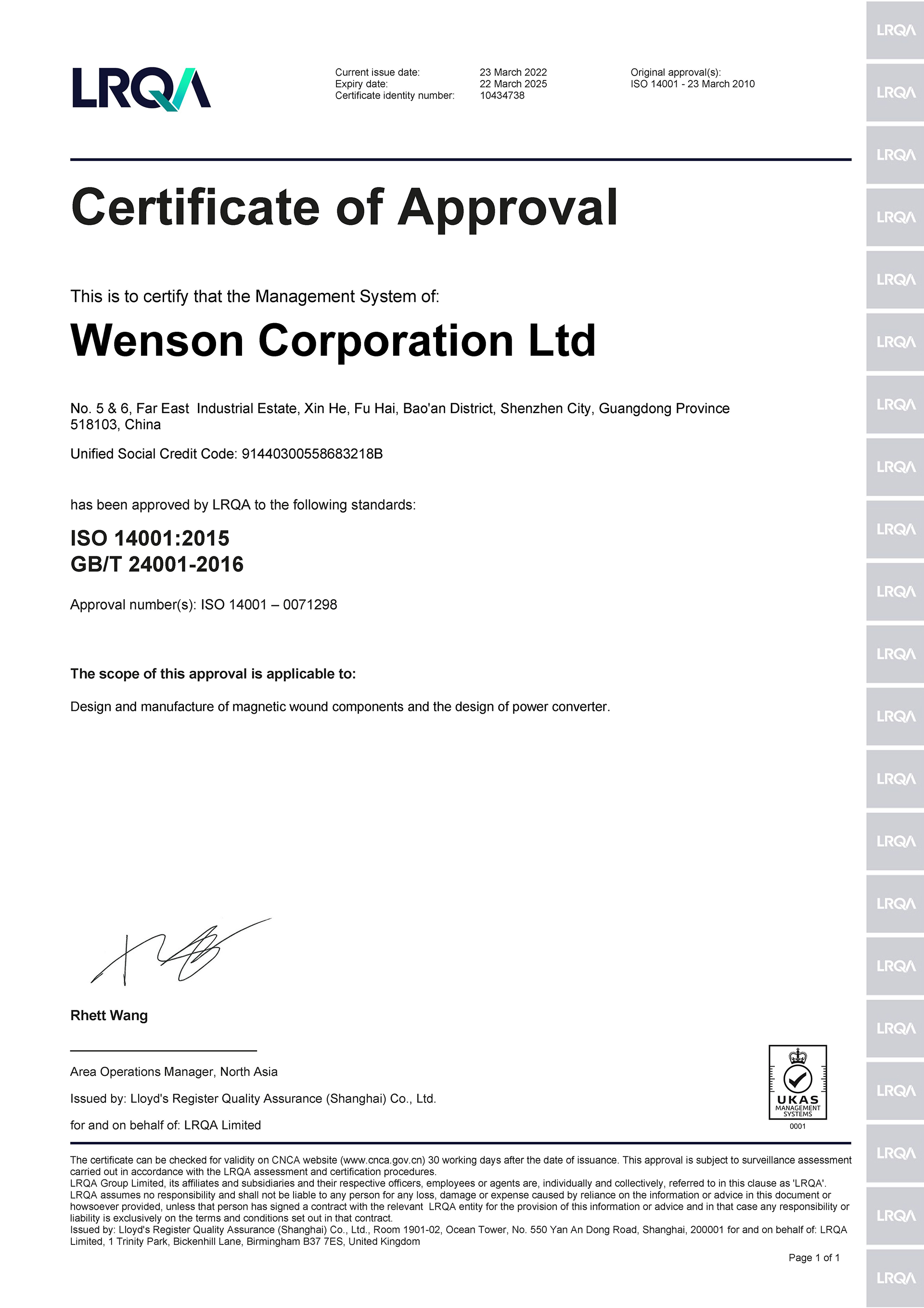 Wenson Quality Strategy adheres to the TQM Principle that aims at production high quality products and services for customers. Multidisciplinary-team-work approach has been incorporated in our quality management system. A high variety of precision equipment together with appropriate stabilized control, facilities in our on-going excellency in product performance as well as reliability. Emphasis on defect prevention and continual improvement programs have been our delivers for continuous enhancement of our product quality and process effectiveness.